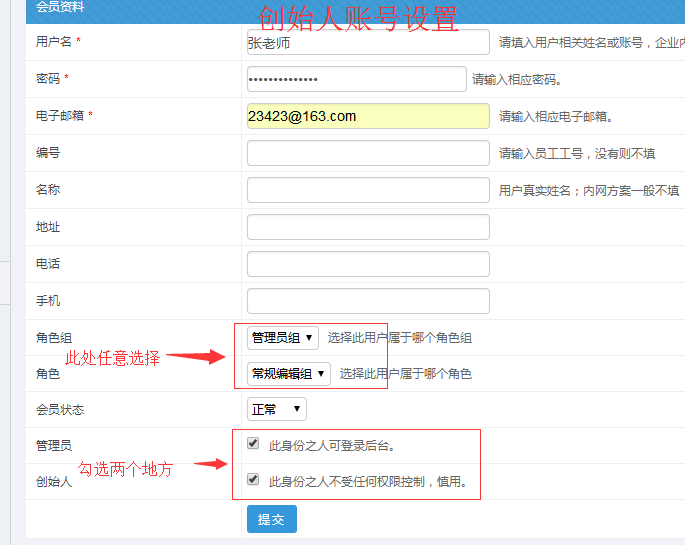 如果是管理員,需要進入后臺操作的權限,需要勾選那個此身份可以進入后臺。