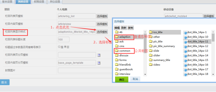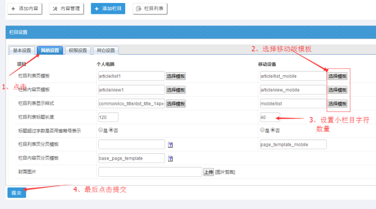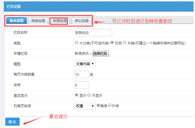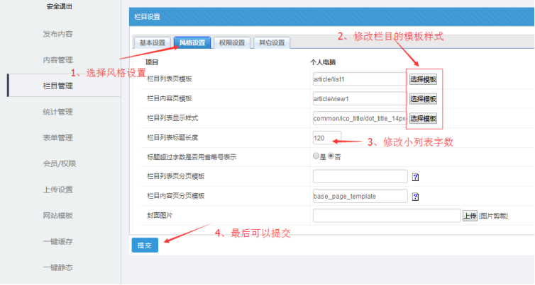 進入如下的欄目管理界面,可以對欄目風格進行設置: