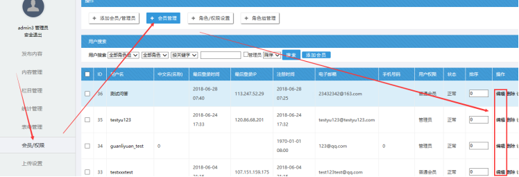 A:登陸后臺------點擊“會員/權(quán)限”---------會員管理----------編輯