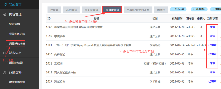 如果您是欄目管理員或系統(tǒng)管理員,需要對(duì)投稿人發(fā)布的內(nèi)容進(jìn)行審核,就是點(diǎn)擊此處。
