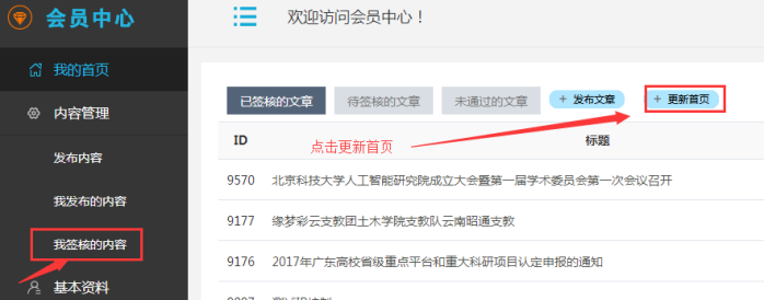 會(huì)員中心主要的作用:就是可以讓所有用戶,在此處進(jìn)行內(nèi)容發(fā)布、內(nèi)容審核、修改的操作;同時(shí)管理員還可以進(jìn)行部分系統(tǒng)管理,比如更新首頁、設(shè)置屬性、更新緩存。