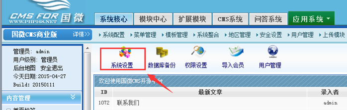 或 網址:域名/admin.php 默認賬號密碼是: admin *****
