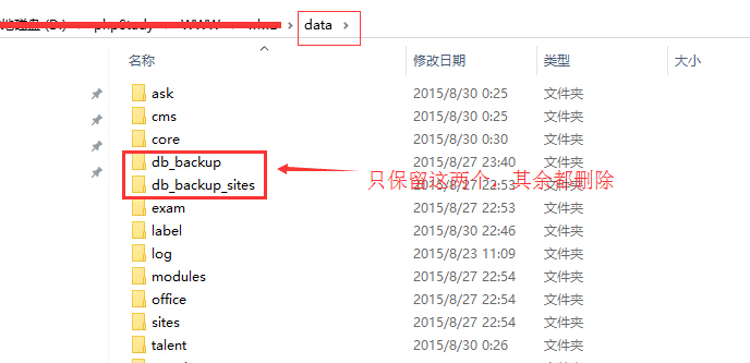 由于是整體壓縮,之前網(wǎng)站里面的緩存文件也保留下來了,現(xiàn)在需要?jiǎng)h除;進(jìn)入網(wǎng)站根目錄下data目錄,僅保留db_backup數(shù)據(jù)備份目錄(如有站群系統(tǒng),db_backup_sites備份數(shù)據(jù)目錄也保存),現(xiàn)在網(wǎng)站就可以進(jìn)入重新安裝的狀態(tài)了。