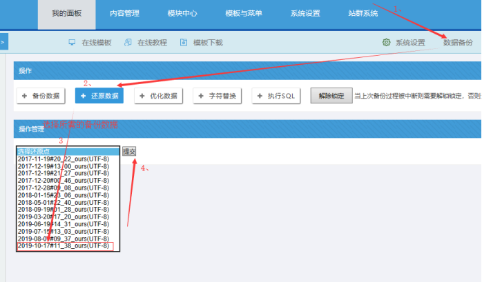 系統(tǒng)安裝后,務(wù)必不要更新緩存;先點(diǎn)擊“數(shù)據(jù)備份”---“數(shù)據(jù)還原”---“選擇你所需的數(shù)據(jù)備份文件”----點(diǎn)擊提交。