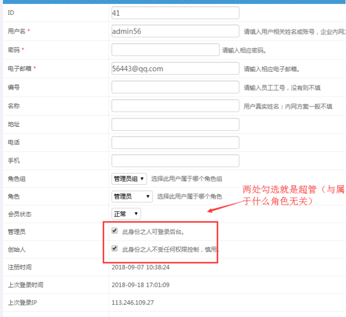 C:勾選此處可以讓管理員進入后臺(分站管理員賬號需要勾選)