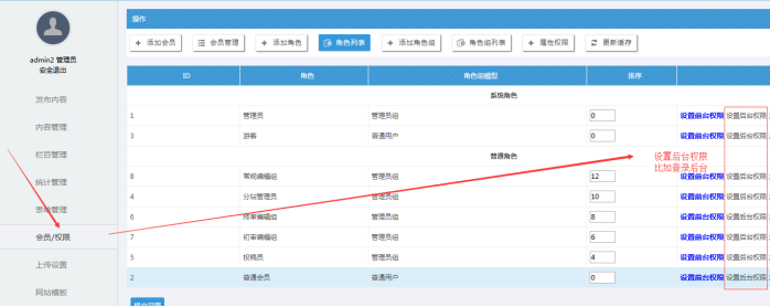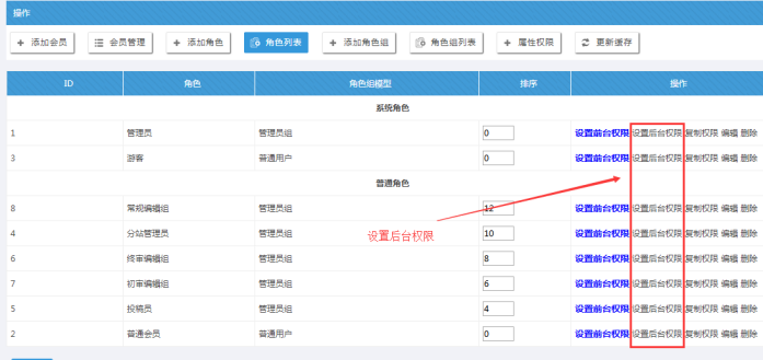A:角色前臺權(quán)限設(shè)置(角色權(quán)限一般設(shè)置前臺權(quán)限;角色大部分設(shè)置基礎(chǔ)權(quán)限即可)