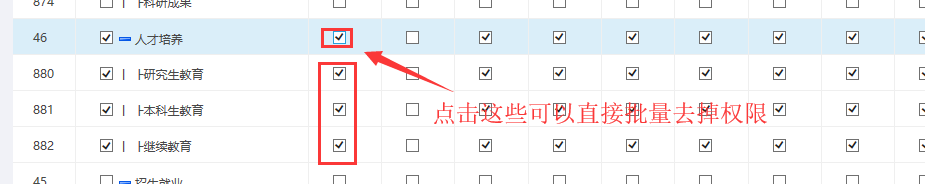 J、快捷設置權限的方式(勾選左邊的按鈕,就右邊的權限都勾選了;不需要的權限可以直接去掉;)