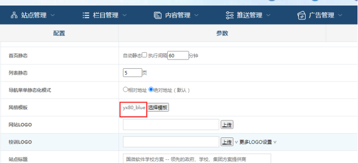 進(jìn)入站群子站后臺(tái)------點(diǎn)擊此站的編輯站點(diǎn)--------查看模板選擇