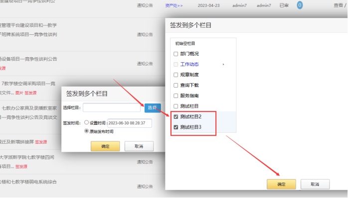 3、【勾選】對應需要簽發到多個欄目的內容------點擊【簽發到多個欄目】----看到一個彈出框