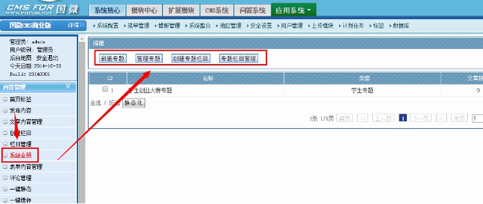 專題的內容都來源于cms里面的欄目。一般的做法是欄目里面創建一個專題大欄目和他的小欄目。專門發專題需要的內容。當然,現在比較概要簡單的做法,就是直接用cms的欄目做專題。