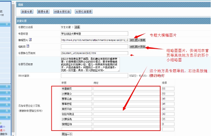 2、此處是專題欄目的創建,專題欄目主要是專題數量多了,方便歸類,沒有其他用途。