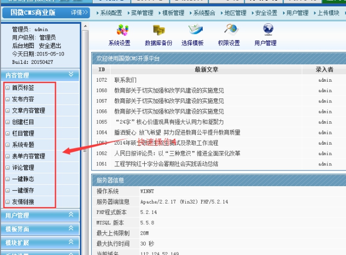 因為系統緩存原因,剛剛發布的內容,前臺未必可以看到;但是此處肯定可以看到,只要在此看到最新內容,就說這些內容都是發布成功的;如果需要即刻前臺看到內容效果,就可以更新標簽緩存即可。