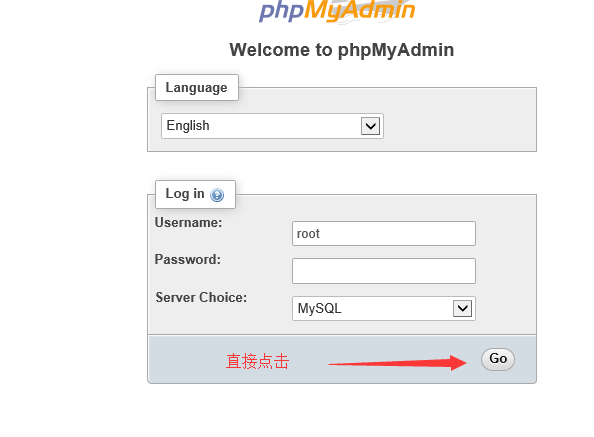數據庫管理入口,賬號輸入root,然后直接點擊登錄(因為默認密碼為空)