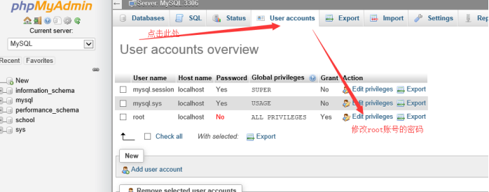 修改數據庫root密碼:
