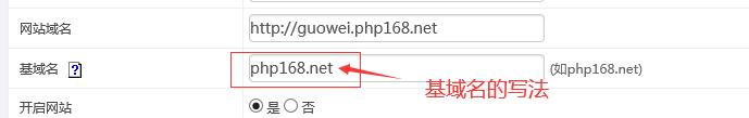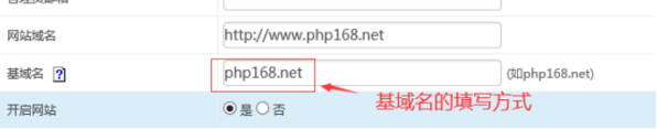 基域名的填寫是:(php168.net 前面不用加http://,基域名和上面一樣,只要填寫頂級域名即可)