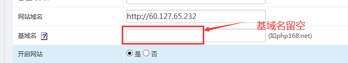 基域名的填寫是:(留空;IP安裝的情況下,基域名留空)