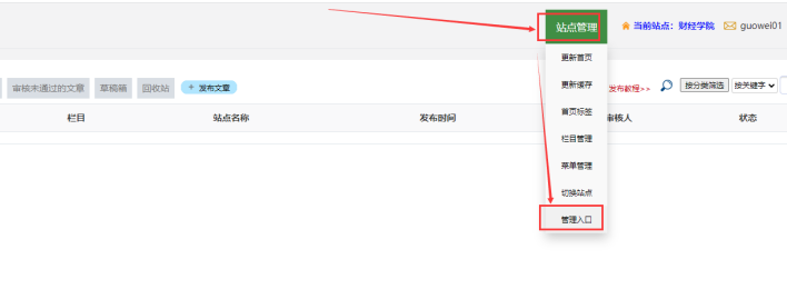 然后鼠標放在【站點管理】上--------點擊【管理入口】:這樣就可以進入后臺了
