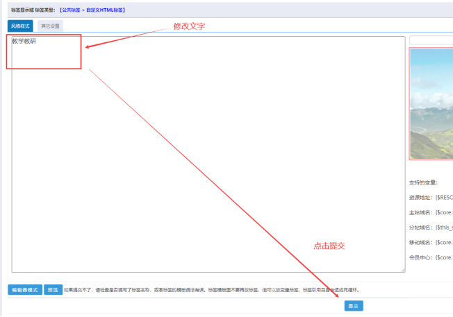 在對應顯示的頁面----修改對應的文字----點擊提交:文字即可修改完成了