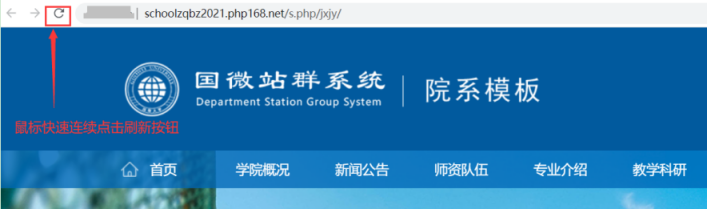打開對應首頁------鼠標快速連續兩次點擊【刷新】按鈕------就可以打開查看到效果了