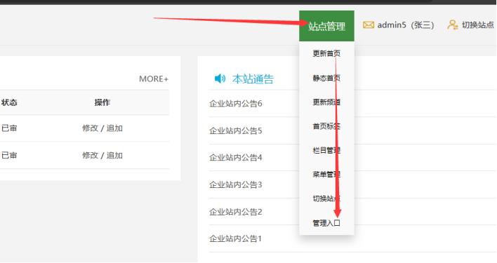 B、鼠標放在【站點管理】上----點擊【管理入口】: