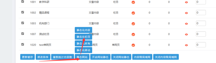 在欄目管理底部-----點擊【靜態網站】----點擊【靜態化欄目】----最后打開對應欄目,瀏覽器刷新即可了: