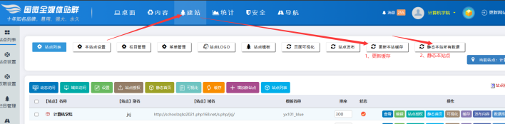 在子站后臺-----點擊【建站】----點擊【更新本站緩存】----點擊【靜態本站所有數據】----最后打開對應欄目,瀏覽器刷新即可了: