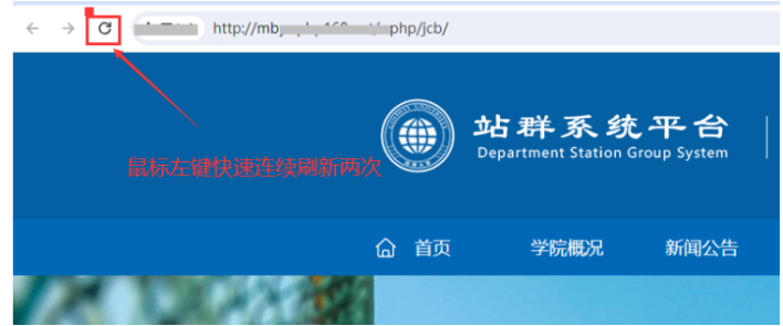 然后打開對(duì)應(yīng)網(wǎng)頁,為了清理瀏覽器緩存,在瀏覽器的左上方,鼠標(biāo)左鍵【快速連續(xù)點(diǎn)擊兩次】,即可查看到效果;如果還不行,就清理瀏覽器的訪問記錄,再次刷新即可。