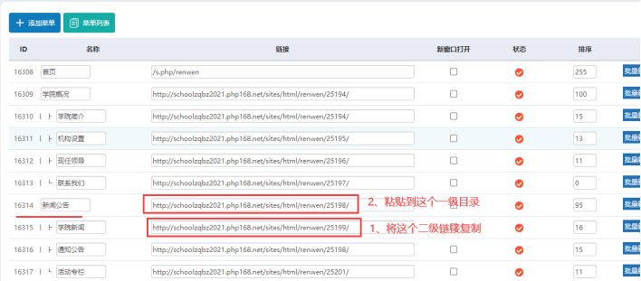 (包括:菜單名稱+鏈接+菜單是否新窗口打開)