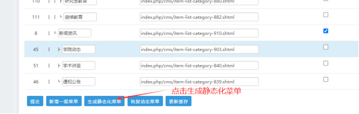 B、點(diǎn)擊【生成靜態(tài)化菜單】按鈕