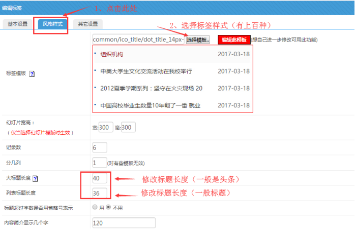 點(diǎn)擊“風(fēng)格樣式”-----點(diǎn)擊“選擇模板”(有上百個(gè)樣式選擇)---修改標(biāo)題長度(一般標(biāo)題就修改列表標(biāo)題長度即可)--最后點(diǎn)擊“提交”: